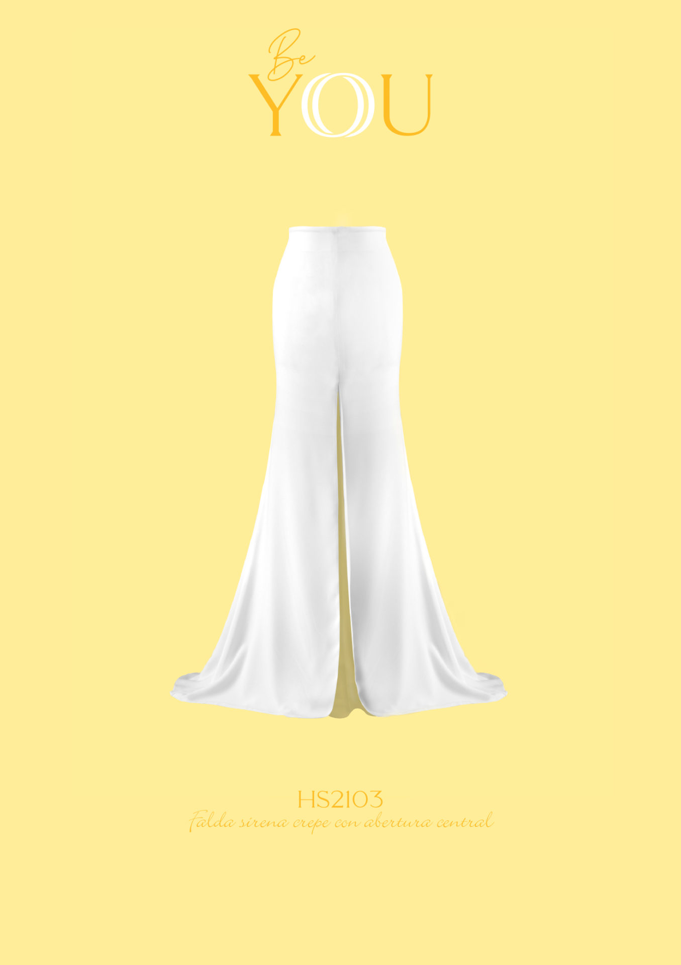 Falda de novia de sencilla línea sirena con abertura central, confeccionada en crepe ligero.
