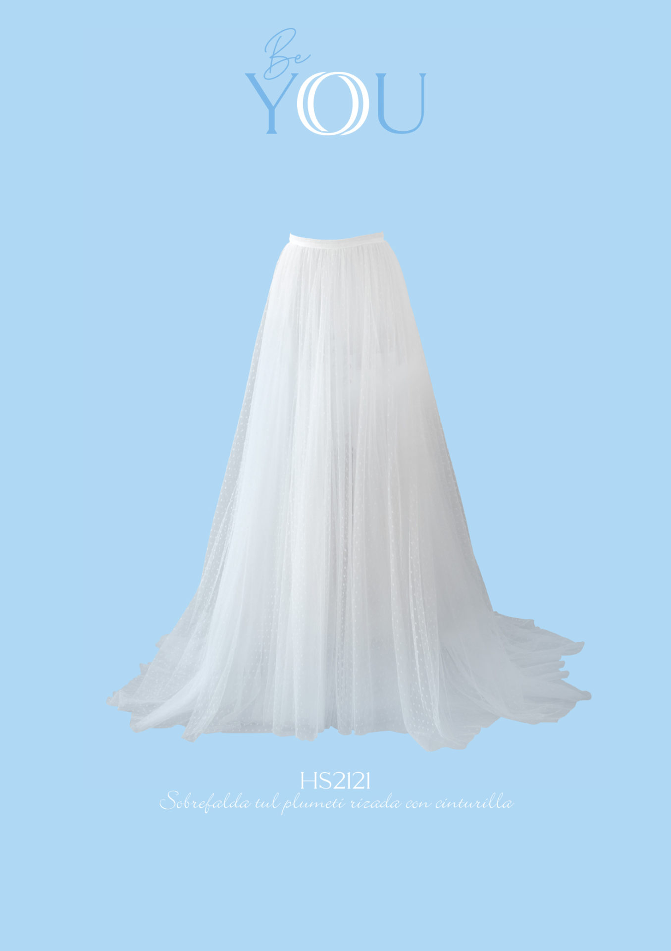Da volumen a tu look nupcial con esta sobrefalda, confeccionada en tul plumeti y fruncida en cintura.