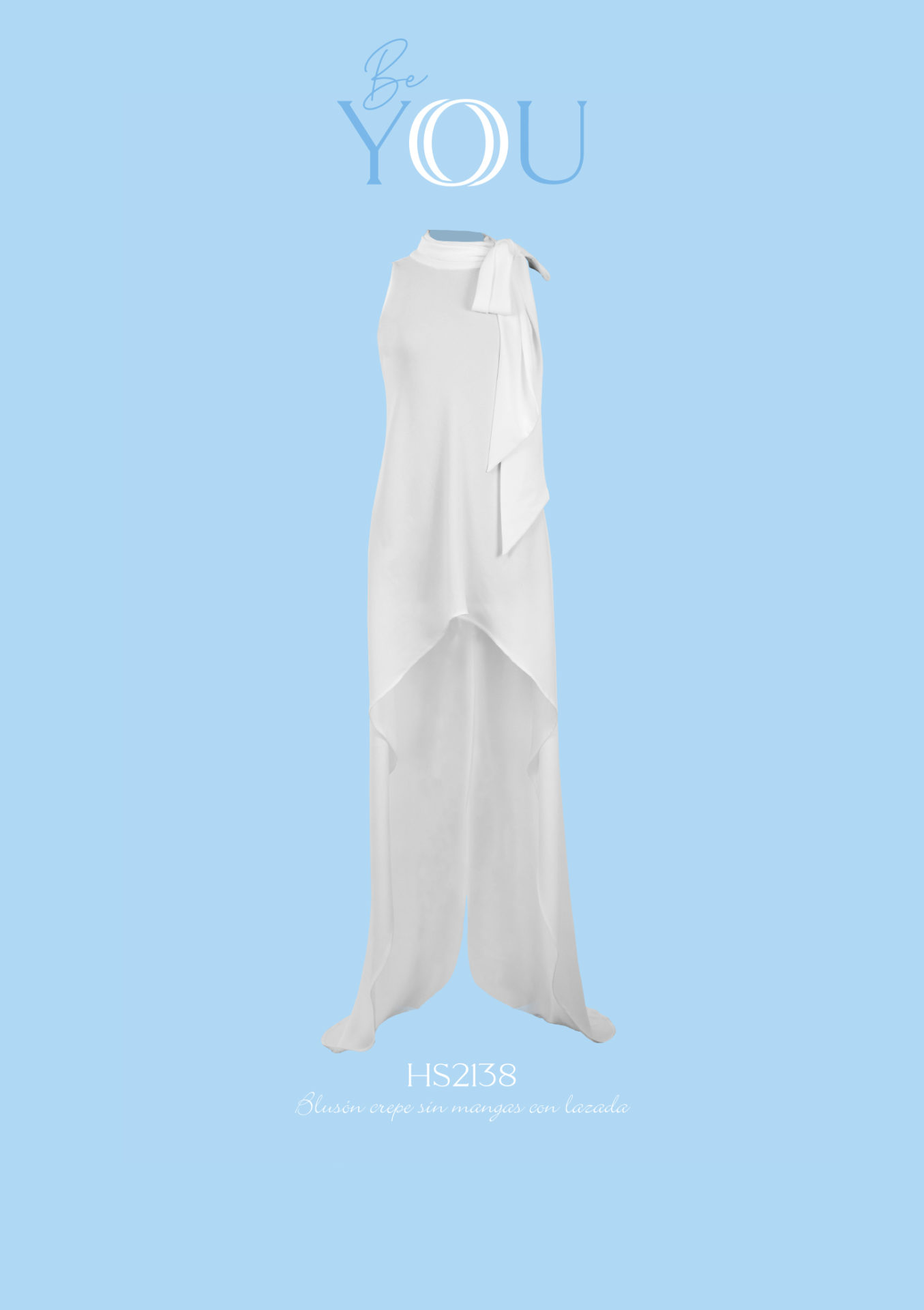 Completa tu look con este maravilloso blusón de novia confeccionado en crepe, de sisa americana y lazada al cuello, caracterizado por su larga cola abierta.