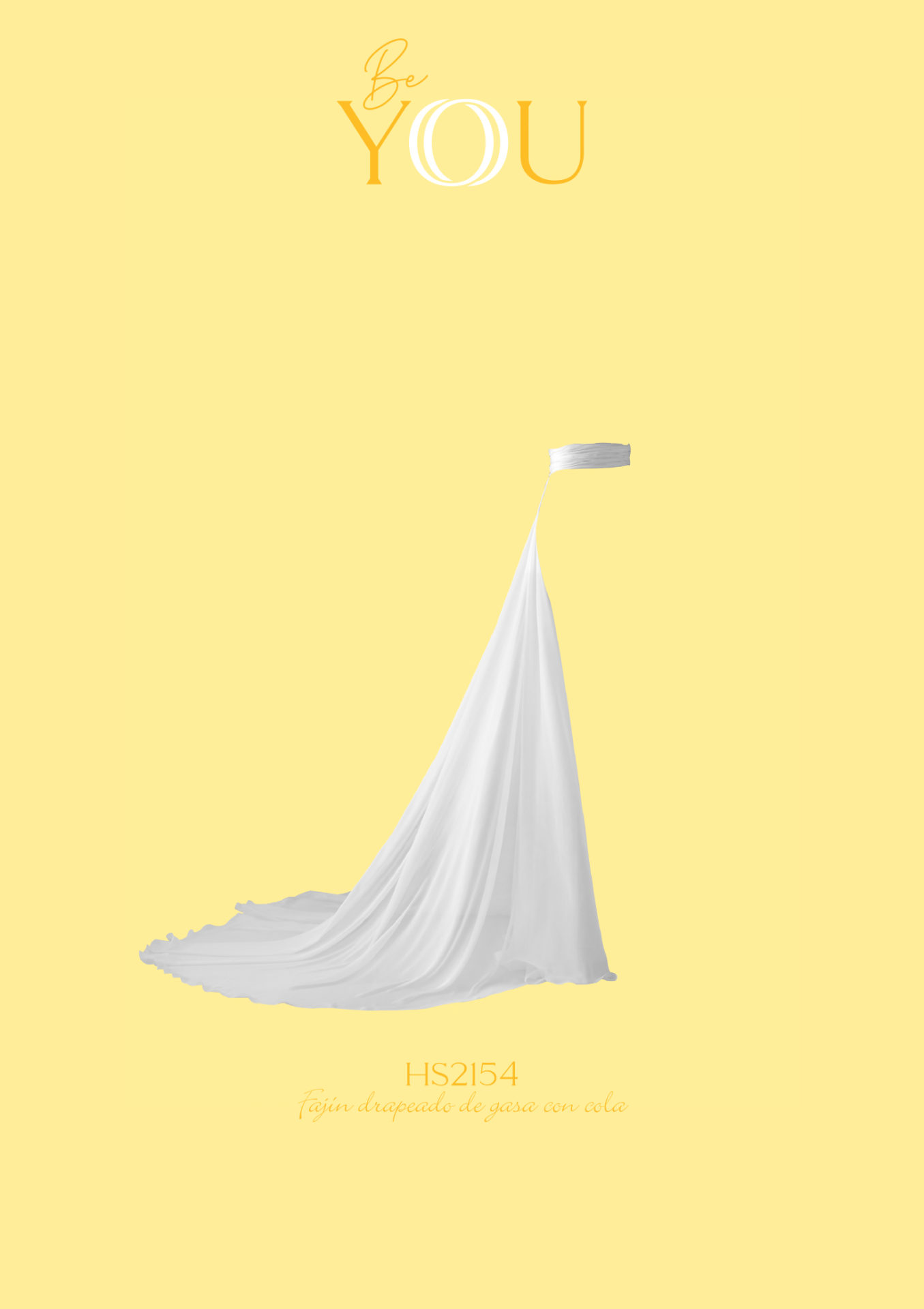 Original fajín de gasa drapeada, con ligera sobrecola en el mismo tejido.