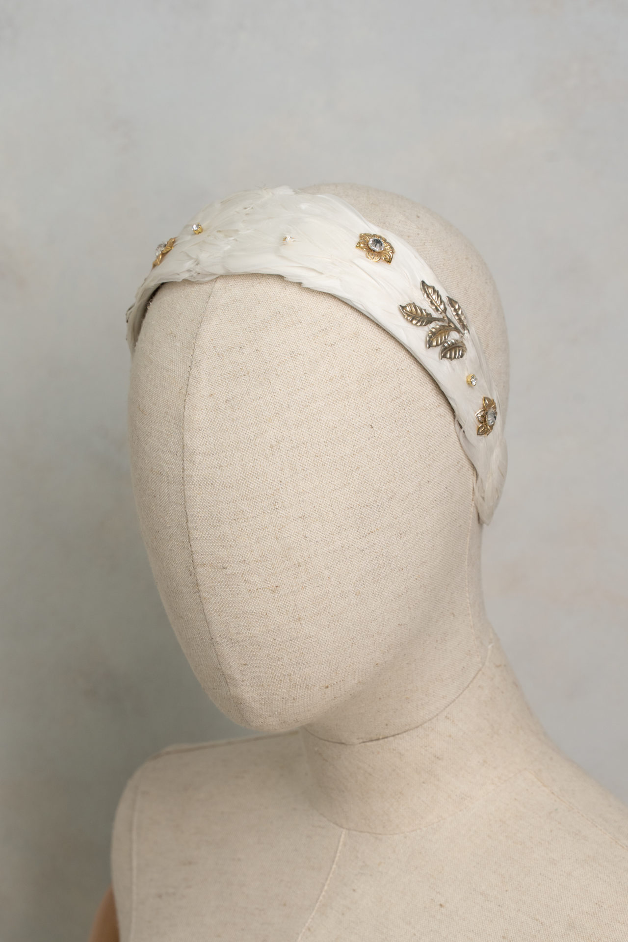 DIADEMA PLUMAS BLANCAS Y LATON